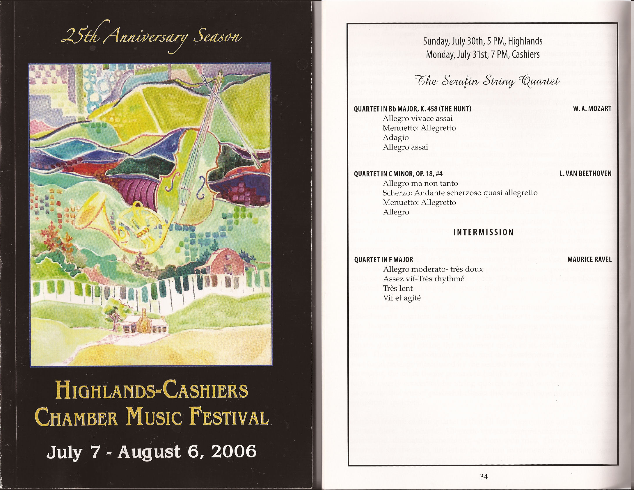 Highlands-Cashiers Chamber Music Festival Serafin String Quartet July 30-31, 2006 |