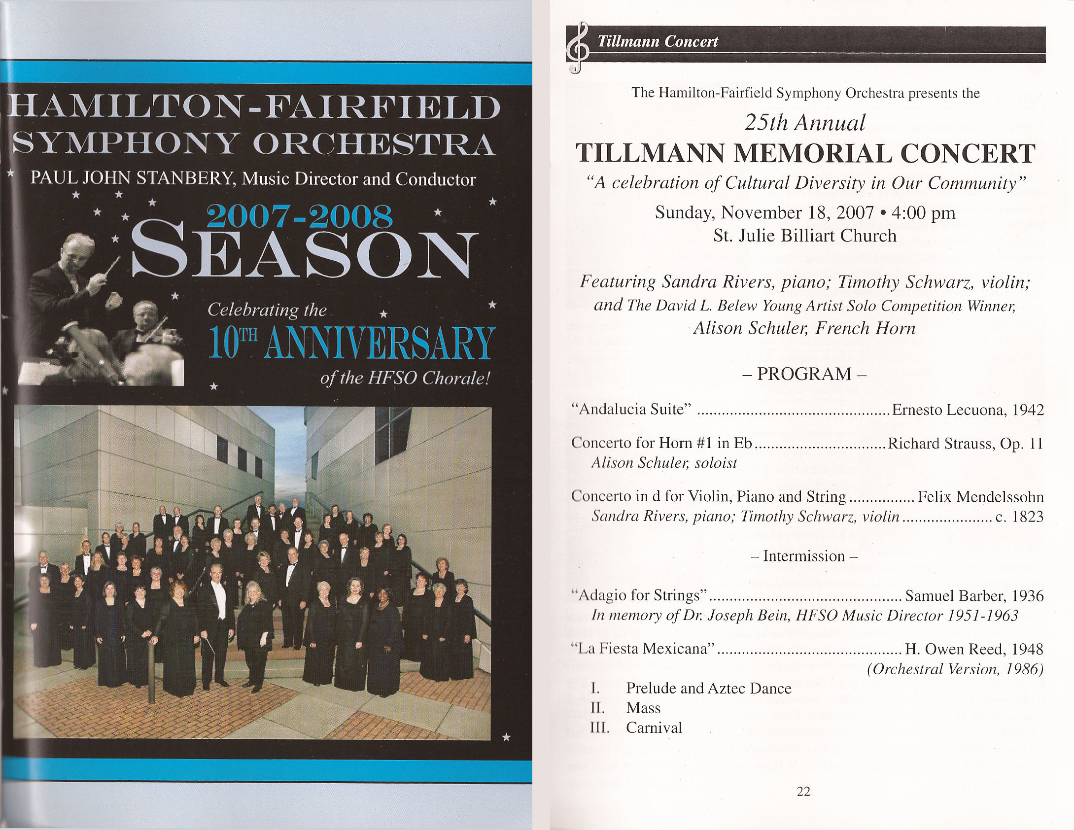 Hamilton-Fairfield Symphony Orchestra Tillman Memorial Concert November 18, 2007 |